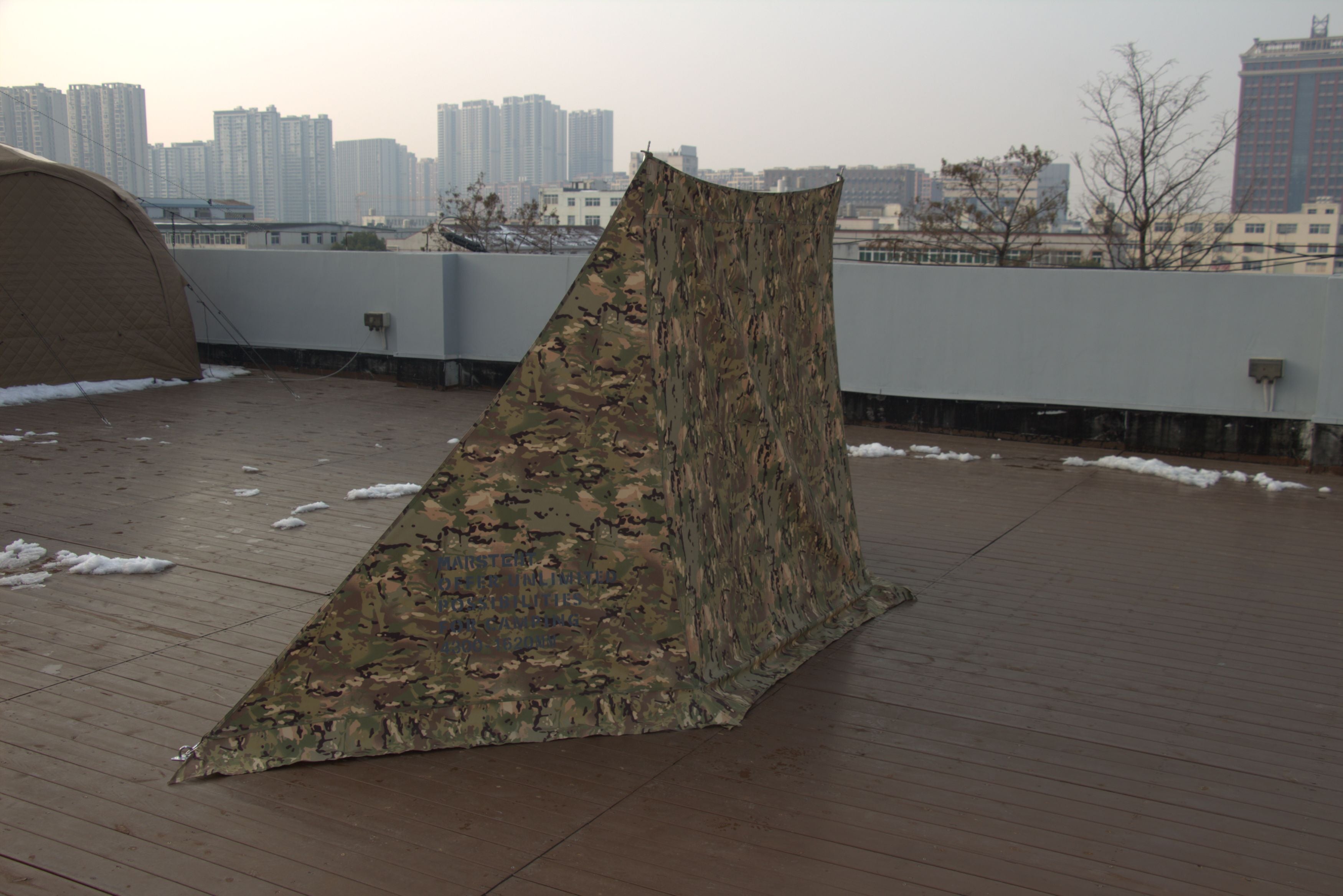 Available in Grey, Green, Brown, Black, and Camouflages, the MARS Wind Shield integrates seamlessly with tents, tarps, and pole systems for flexible outdoor setups.