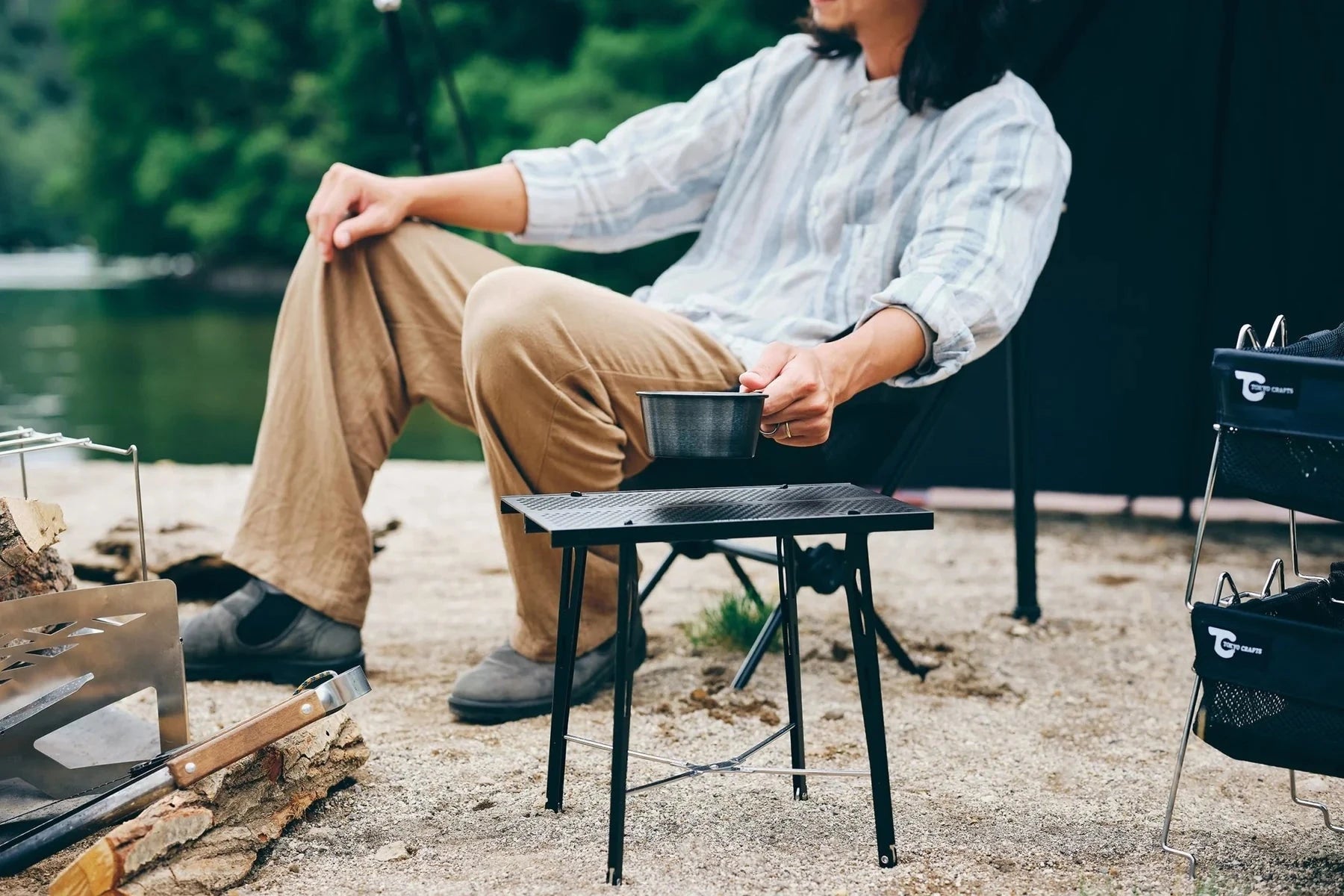 The TOKYOCRAFTS Coside Table is a compact, lightweight side table designed for minimalist camping setups. With an ideal height for relaxed seated positions and a slim fold-flat design, it pairs perfectly with low chairs and compact camp furniture.