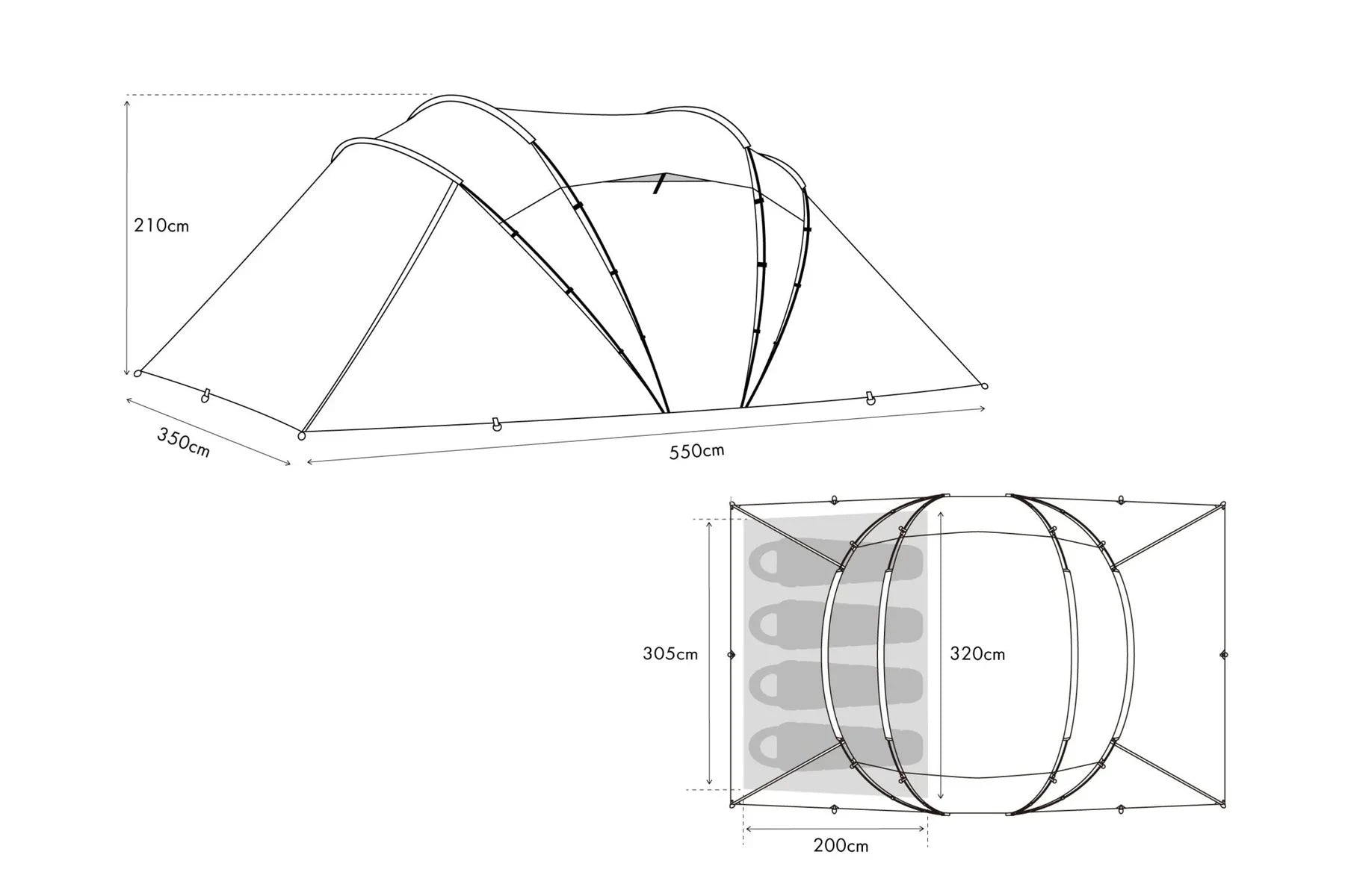 Symmetrical Structure – Fully symmetrical layout removes orientation confusion and allows optional inner tents to be installed on either side.